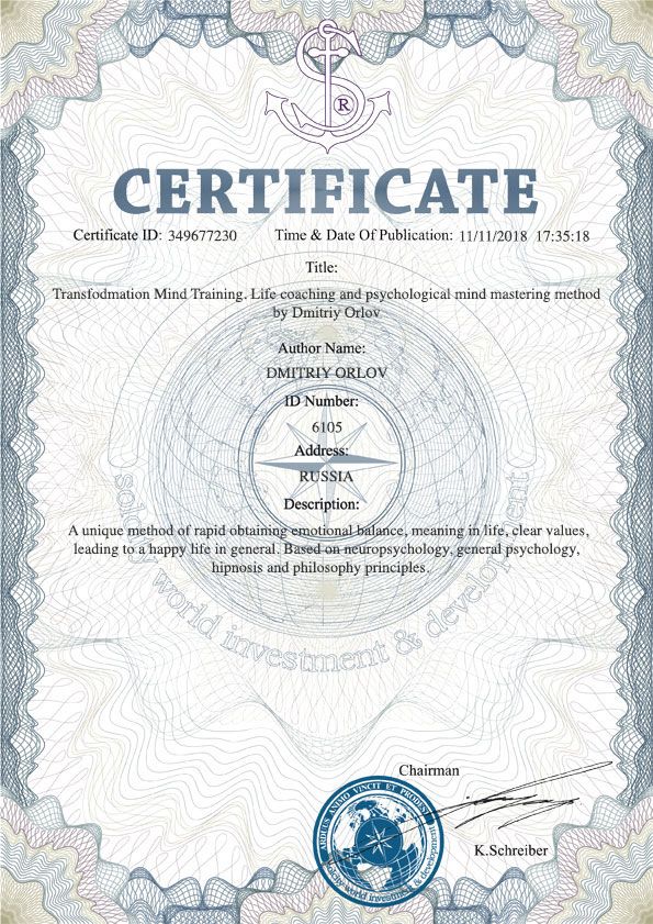 - член Национальной ассоциации психосоматологов (РФ); - член Американской Национальной Гильдии Гипнотерапевтов; - член Американской Ассоциации Holistic Mind Therapy; - сертифицированный мастер-гипнотерапевт; - регрессолог; - психосоматолог; - психолог.